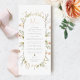 A menu to match our "A Little Wildflower Boho Bee Girl Baby Shower" invitation. A beautiful combination of hand-painted flowers and modern script lettering. The front of these cards is decorated with an oval-shaped frame of delicate flowers and botanical greenery. Inside the frame, there is space for your different meal options. Below that, there is a tiny little honey bee separating the mains from the dessert options. Perfect for spring, summer, or fall showers, for country, boho, garden, and floral themes. To get started changing the text, click on "Personalize this template" and edit the wording in the template boxes.