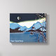 A somewhat stylised image of birds perched in a tree on a long, dark, cold winter night. Everything, the land and mountains, is covered in snow. A crescent moon hangs in the sky, the Northern Lights glow beyond the mountains. Add your own text.
