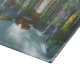 A forest walk through the seasons, from winter snow, to spring bluebells and azaleas, to summer green and clover, to the bright yellows and oranges of autumn leaves, and back to snow. A bright red autumn tree marks the end of the perspective back to winter again.