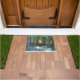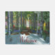 A forest walk through the seasons, from winter snow, to spring bluebells and azaleas, to summer green and clover, to the bright yellows and oranges of autumn leaves, and back to snow. A bright red autumn tree marks the end of the perspective back to winter again.