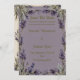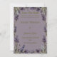 This wedding invitation features an elegant and vintage-inspired design with a lavender-themed floral frame. The delicate watercolour botanical elements, including soft purple flowers and muted green leaves, create a romantic and rustic charm. The background blends a soft beige border with a muted lavender center, offering a sophisticated and timeless feel. The artistic hand-painted floral accents add a touch of nature and serenity, making it a perfect choice for a classic, garden, or rustic wedding celebration.