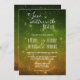 Celestial wedding invitations features script typography saying, A Love Written in the Stars, with green and gold night sky with twinkling stars Wedding Invitation.
