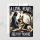 A woman sits with a German Shepherd dog in a field. The woman is wearing a dark blue jacket and the dog is a light brown and black colour. The text reads, A Loyal Heart is your Greatest Treasure.
