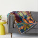 A quality printed throw has its advantages. This is a much finer weave throw than its loopier cousins, and though lighter, it is worth the investment for custom room accessorizing. The back is much prettier than the typical brown, and the fringe on the long sides very vivid, the selvage nicely done. Before photographing, I washed the throw in cold water, delicate, with a thicker woven throw the same size. On tumble dry low, this throw was dry in half the time as the other. This is a very practical quality if you use throws for furniture covers or to wrap up in frequently. The sleekness of the fabric makes it a great layer for accenting or protecting without the feeling of sitting on too much stuff. Perfect for napping or when you feel a light chill coming on. The color printing is beautiful and on this fabric, matched the design and color of my Photoshop image. This is an advantage for blending room fabrics and colors. The fringe on the short sides prints the colors from the design image and therefore varies from the side fringe. I streaked a white fractal line through the plaid pattern to give the illusion of weaving. This printed as crisp as an illusory thread, and put some white in the short side fringe, showing another advantage of print vs loomed- for artistic purposes, line lines, detail, and color integrity can be planned and preserved. My loomed throws have color limitations and more of a needlepoint texture. Print throws reproduce an exact image. The throw felt a little stiff straight out of the package, but this went away in the first delicate wash. Of course I searched the wash water for ink or bleeding and there was none.