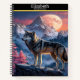 A majestic wolf howls at the glowing moonlight notebook