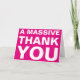 A massive thank you greeting card with modern big fonts on bright colour background.