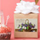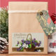 Vintage Victorian Christmas card illustration with a basket of flowers and greeting "A Merry Christmas Bright and Gay."