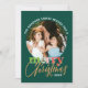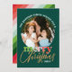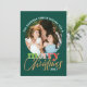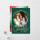 Make the message your with this customizeable Christmas card. Add any wording you like around your photo in the middle. ‘Merry Christmas” is below in a mix of block and hand drawn script fonts. Also choose between a white backer or patterned to match.