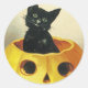 Vintage Halloween greeting card illustration with a black kitten inside of a Jack o'Lantern!