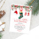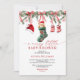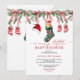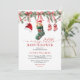 Celebrate a joyous winter baby shower with the A Merry Little Christmas Baby Shower Invitation. This festive invitation features charming Christmas details like red bows, garlands, a teddy bear in a stocking, and adorable holiday accents such as Santa hats and baby booties. Perfect for a December baby shower, the design radiates the warmth and magic of the holiday season. Customise the card with your event details to add a personal touch to this delightful and memorable invitation.
