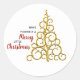 These holiday stickers will brighten up your gift packages and holiday greeting card envelopes. Set on a white background, is a contemporary gold, scrolled tree and the words Have Yourself A Merry Little Christmas. An elegant touch for all your trimmings.