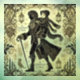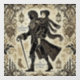 Bob Cratchit and Tiny Tim bring holiday cheer to windows with this festive window cling featuring their silhouette and baroque style motifs,