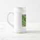 A 22oz,White/Gold ,Stein, ( Mug), With a Picture of a Beautiful Monarch Butterfly, laying in the Grass on it, with a White Background.