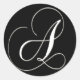 A monogram with a black background, white script initial and silver border. Perfect sticker for your wedding envelopes, gift bags, or other decor for your elegant wedding.