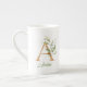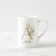 A monogram greenery eucalyptus gold glitter bone china mug