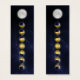 This sparkling design illustrates the lunar cycle in bright gold and deep blue. The jewels representing the moon phases run in a semi-circle from waxing crescent, to first quarter, waxing gibbous, full moon, waning gibbous, last quarter, and ending on a waning crescent. They are set against a fractal backdrop like the starry sky, with a silvery glowing moon photo from NASA to complete the piece.