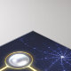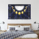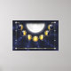 This sparkling design illustrates the lunar cycle in bright gold and deep blue. The jewels representing the moon phases run in a semi-circle from waxing crescent, to first quarter, waxing gibbous, full moon, waning gibbous, last quarter, and ending on a waning crescent. They are set against a fractal backdrop like the starry sky, with a silvery glowing moon photo from NASA to complete the piece.