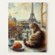 Step onto a charming Parisian street and into a perfect morning moment. This beautiful impressionistic oil painting captures an adorable ginger cat perched on a bistro table, ready to share a steaming cup of coffee and a flaky croissant. In the background, the iconic Eiffel Tower rises through the morning mist, completing a scene filled with romance, charm, and the simple joy of a perfect morning.