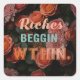 A multi-purpose design of "Riches Begin Within" Square Sticker