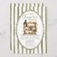 Vintage Green Stripe A New Chapter Begin Christmas Book Library Baby Shower Invitation