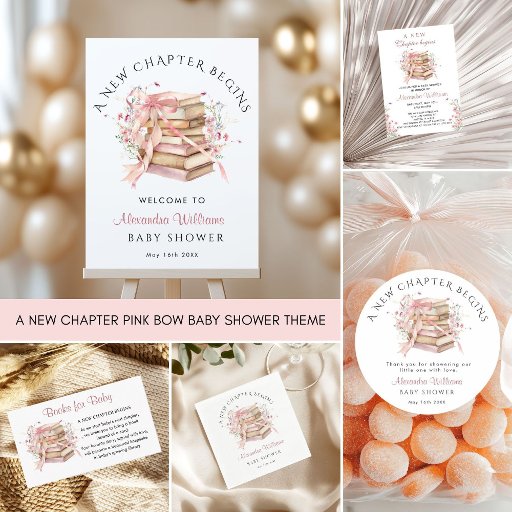 A New Chapter Begins Pink Bow Books Baby ShowerDesigned by Maria Eugenia Rodriguez