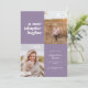 This modern graduation announcement features the words "a new chapter begins" on the top left of the card on a lilac background. It has spaces for two vertical photos to celebrate your graduate's journey so far, a photo from the past and a photo from the present. The front of the card has space for the graduate's name, class year, school, and future plans. The back of the card has space for additional text and can be used as a graduation party invitation or to write a personal message.