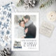 This Married & Merry holiday card blends your favourite wedding or engagement photo with a blue and silver book stack illustration — accented by pine and ribbon. Finished with the headline “A New Chapter Begins,” it’s a newlywed design that feels cool, crisp, and effortlessly stylish.