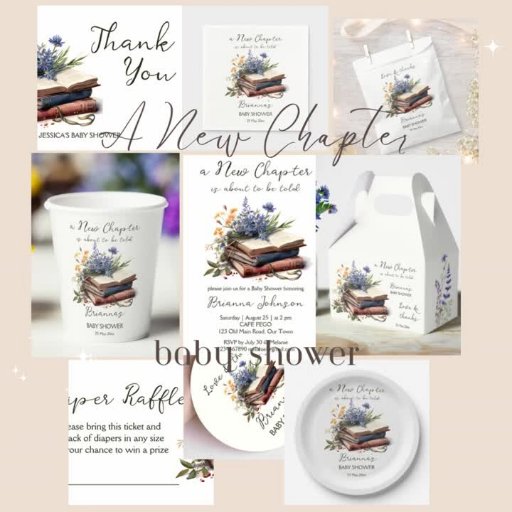 A new chapter book themed baby showerDesigned by Ieva Jenciute