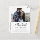 Photo Save the Date with a new wedding date. Upbeat and modern design with brush script. The backside has a custom message with details of the date change and a wedding website url. Customisation options available. Please email slycoconut.designs@gmail.com with any questions.