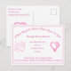 This is a pink on white birth announcement postcard for a baby girl. It is simple with minimal artwork, just one watercolor heart with flowers on each side, allowing for something special, a photo of your baby's hand, or your baby!