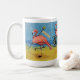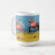 A parade of flamingos celebrate something nice in this whimsical mug.