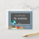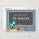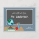 Send a message to your students with this teacher postcard. The design features a graphic of a teacher's desk, a globe and a chalkboard. Custom text allows you to add your name and school.