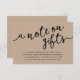 Celebrate the beginning of your journey together with our elegantly rustic modern brown kraft theme, crafted "A note on gifts" wedding invitation enclosed card, wish, cash. Featuring a sophisticated blend of modern script and romantic allure, each card is meticulously designed to convey the essence of your special day. Perfectly suited for couples seeking a unique way to share their honeymoon dreams, this card invites your loved ones to contribute towards unforgettable experiences. Whether nestled in a luxurious envelope or presented alongside your wedding invitations, our card adds a touch of enchantment to your celebration, promising cherished memories that last a lifetime. Designed by TeeshaDerrick.