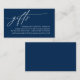 Celebrate the beginning of your journey together with our elegantly crafted "gifts" wedding invitation enclosed card in navy blue theme. Featuring a sophisticated blend of modern script and romantic allure, each card is meticulously designed to convey the essence of your special day. Perfectly suited for couples seeking a unique way to share their honeymoon dreams, this card invites your loved ones to contribute towards unforgettable experiences. Whether nestled in a luxurious envelope or presented alongside your wedding invitations, our card adds a touch of enchantment to your celebration, promising cherished memories that last a lifetime. Designed by TeeshaDerrick.