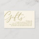 Celebrate the beginning of your journey together with our elegantly classy classy yellow gold crafted "gifts" wedding invitation enclosed card. Featuring a sophisticated blend of modern script and romantic allure, each card is meticulously designed to convey the essence of your special day. Perfectly suited for couples seeking a unique way to share their honeymoon dreams, this card invites your loved ones to contribute towards unforgettable experiences. Whether nestled in a luxurious envelope or presented alongside your wedding invitations, our card adds a touch of enchantment to your celebration, promising cherished memories that last a lifetime. Designed by TeeshaDerrick.