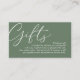 Celebrate the beginning of your journey together with our elegantly classy greenery forest sage green crafted "gifts" wedding invitation enclosed card. Featuring a sophisticated blend of modern script and romantic allure, each card is meticulously designed to convey the essence of your special day. Perfectly suited for couples seeking a unique way to share their honeymoon dreams, this card invites your loved ones to contribute towards unforgettable experiences. Whether nestled in a luxurious envelope or presented alongside your wedding invitations, our card adds a touch of enchantment to your celebration, promising cherished memories that last a lifetime. Designed by TeeshaDerrick.