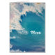 An elegant, amazing painting of a blue wave with golden sparkles on the sea spray of the white curl among the greenish blue of the sea water.
