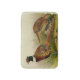 Coloured Drawing of a Ring Necked Pheasant rooster looking over his hen while she pecks for seeds in the clearing of a grass filled prairie. The Rooster is a rainbow of colours including green, yellow, oranges, blues, browns and whites. A pretty Upland Game bird.