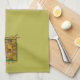 An original illustration by Linda Becker of a partridge in a pear tree, based on the familiar Christmas Carol. The words "And a partridge in a pear tree" written in a deep berry red. Background colour of a light golden geen can be modified to suit.