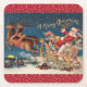 Christmas coasters with a colourful, traditional image of Santa Claus flying his reindeer drawn sleigh on Christmas Eve. With "Merry Christmas" in beautiful gold lettering.