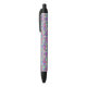 A pen with a black tip and clip, featuring a colorful design that resembles stained glass with vivid pink, blue, and green geometric patterns. The pen is shown with both front and bottom views against a plain white background, highlighting its vibrant decorative surface.