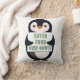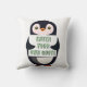 A penguin holding a sign with customizable text cushion