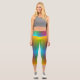 A person wearing vibrant, rainbow-gradient legging