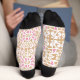 a pink and white flower pattern on a brown backgro socks