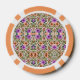 A poker chip with an intricate floral pattern featuring pink, purple, and orange flowers and green leaves on both sides, bordered with orange and white segments.
