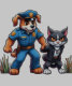 A police dog captures a dangerous cat, humourous design to offer to your friends, children and all those who love animals.