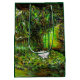 Original painting of a lush pond filled with water lily plants and vibrant foliage. The vivid colors and intricate details create a lively, natural setting. Painted by New York City, Fine Arts Artists, Gaye Elise Beda.
