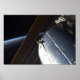 A portion of the International Space Station's Columbus laboratory and solar array panels