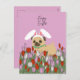 A pug with bunny ears in a field of tulips Easter Holiday Postcard