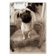 © Jim Dratfield / Wild Apple. A sepia shot of a pug standing on a chair. The pug's head is titled to the side, with a look of wonder in its eyes.